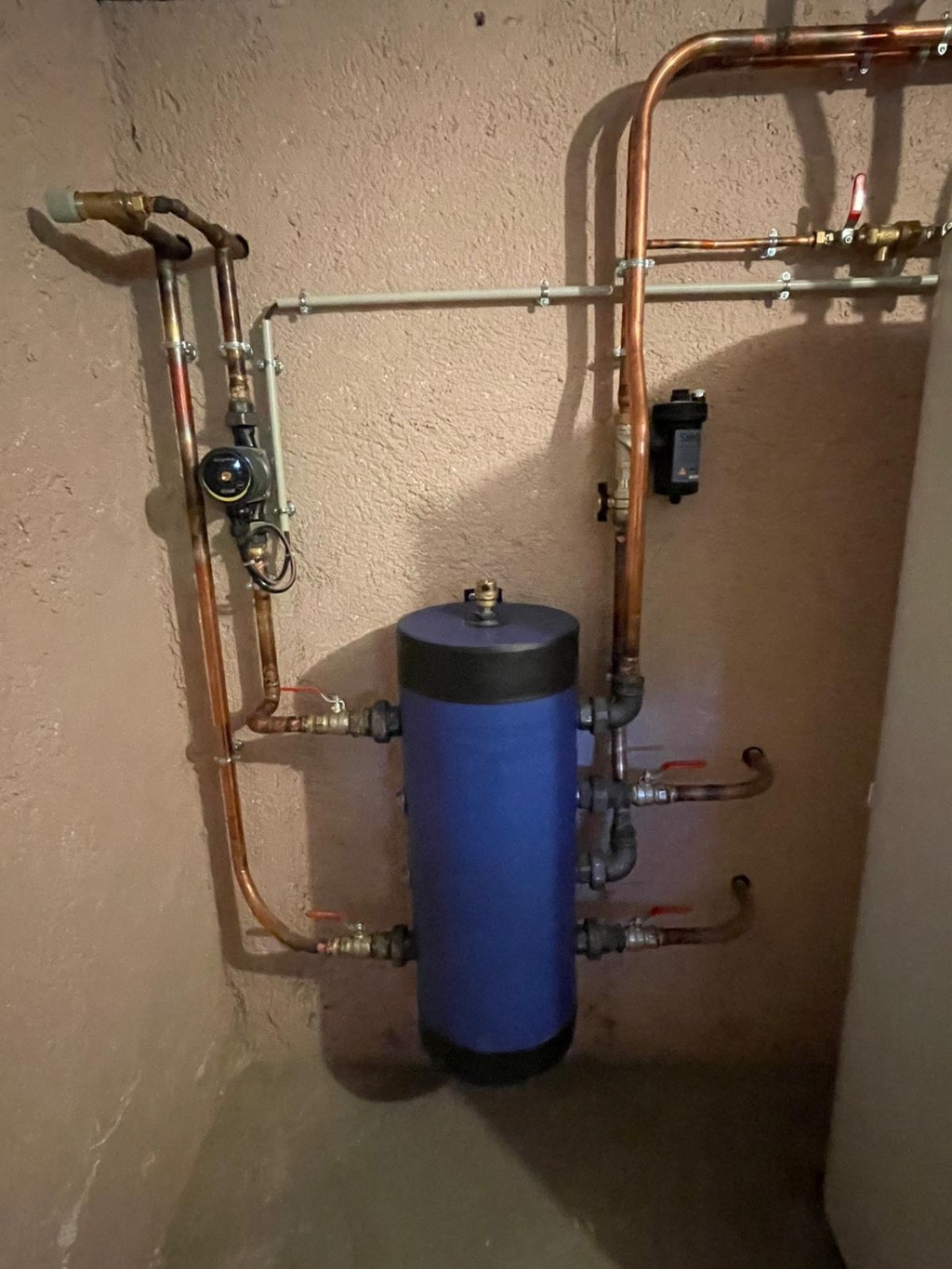 Notre cliente souhaitait optimiser son mode de chauffage et réaliser des économies d'énergie en installant une pompe à chaleur (PAC) air/eau DAIKIN Altherma haute température, tout en conservant sa chaudière fioul. Cette pompe à chaleur sert également pour la production d'eau chaude sanitaire avec un ballon intégré de 180 litres.